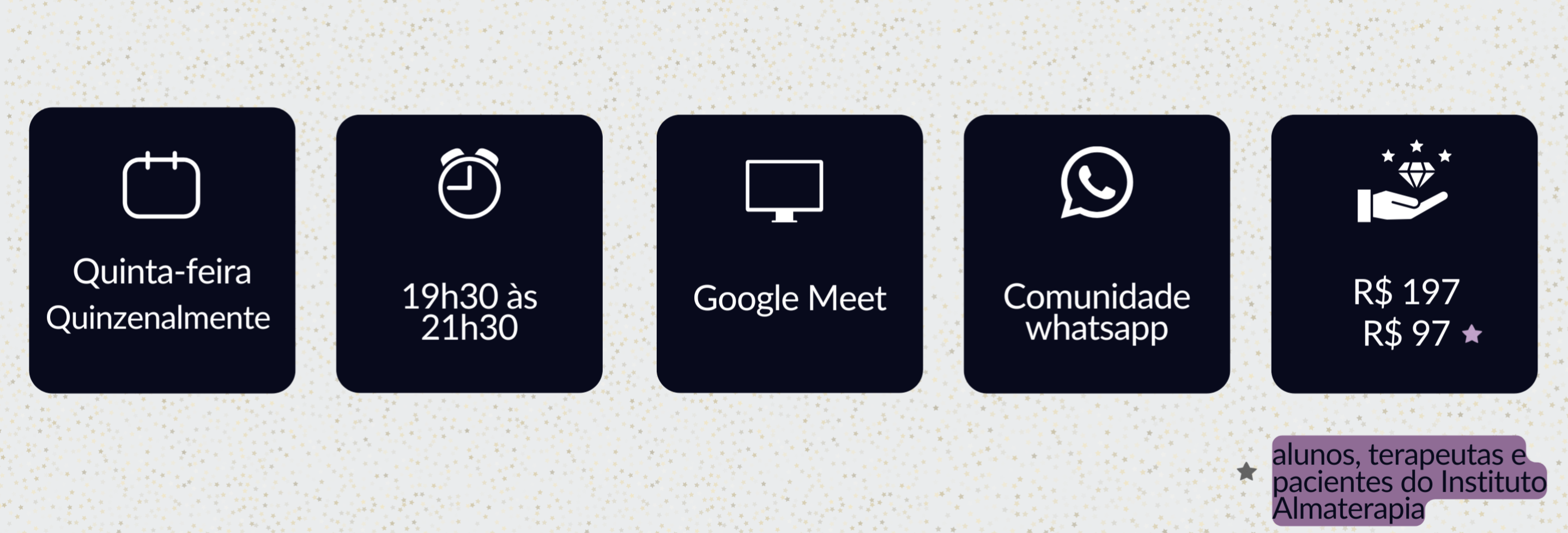 O grupo tem o objetivo de abrir um espaço coletivo de estudos em espiritualidade e holismo, com a guiança de Ana Molina, Arthur Dantas -um casal que estuda e trabalha há anos com pessoas e espiritualidade - e toda a egrégora espiritual do Instituto Almaterapia.